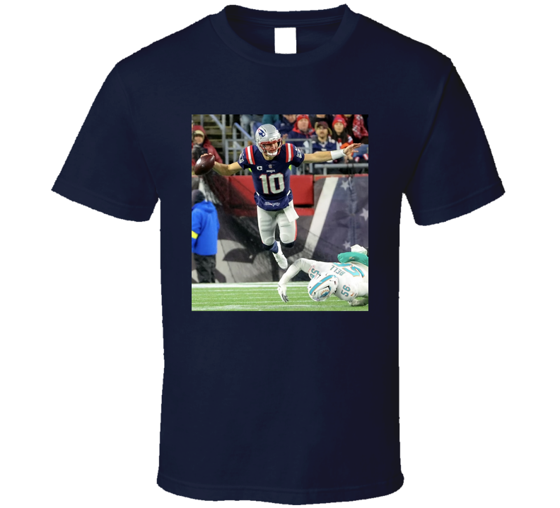 Drake Maye Flying Over Defender T Shirt
